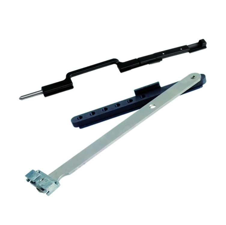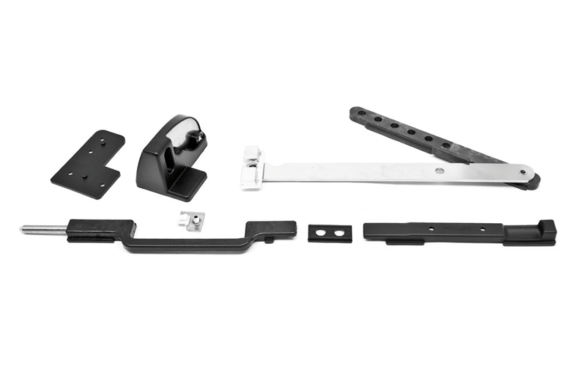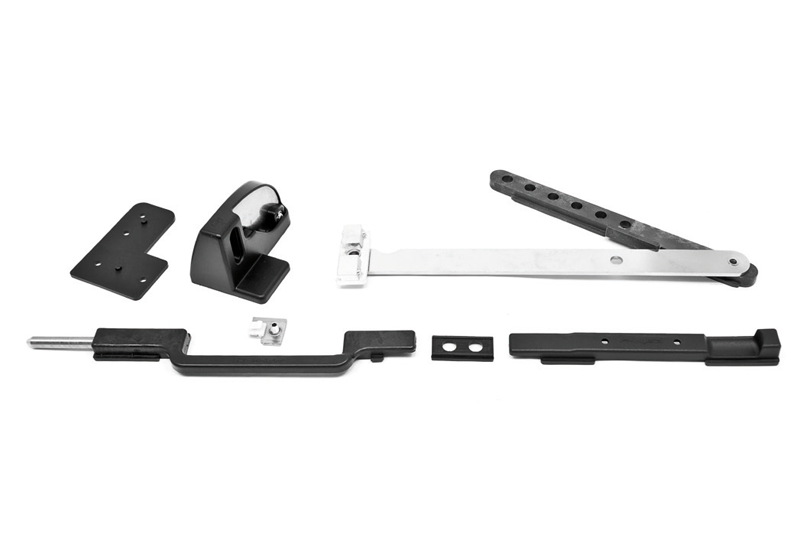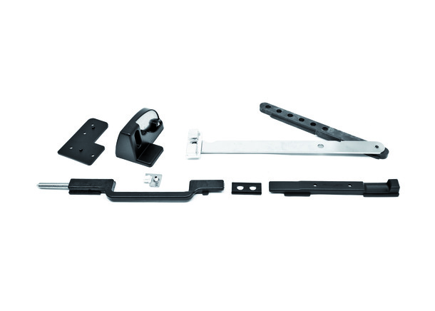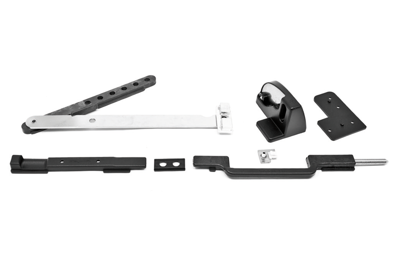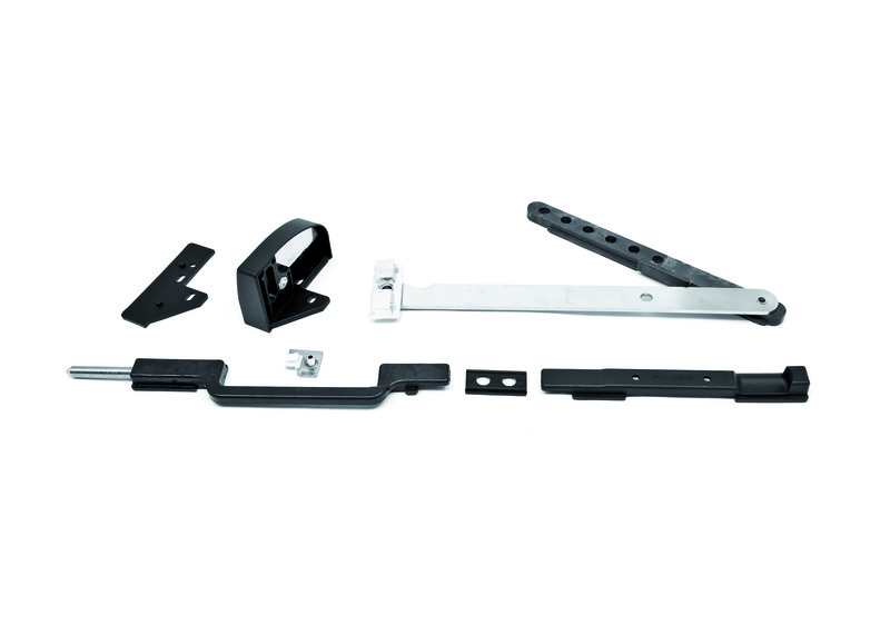 Shutter stop for shutters and shutters in aluminum supplied with frame, allows the locking of the sash in 6 different opening positions between 90° and 160°. Adjustable Cobra is available in kit in the right and left versions (the back is determined by the opening of the sash being inside the building) for C.E.camera profiles (20mm hollow width) centered and decentralized. This system can be applied, through simple processes, both on installed and non installed fixtures. The sash on which it is to be applied must have a width greater than 400 mm, a fundamental requirement for operation.