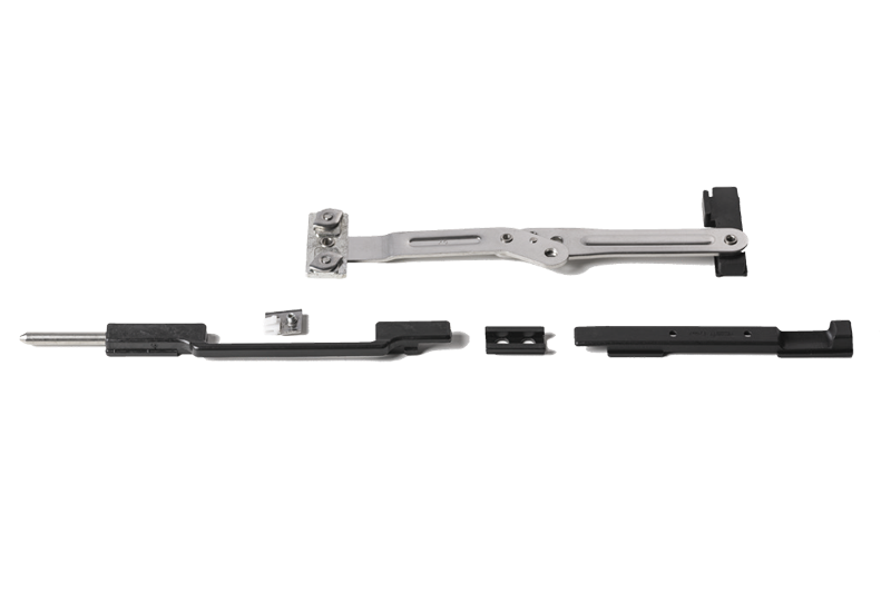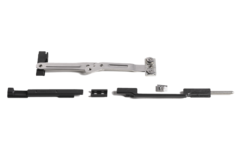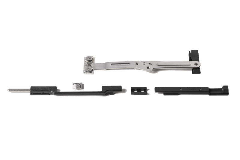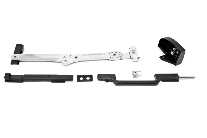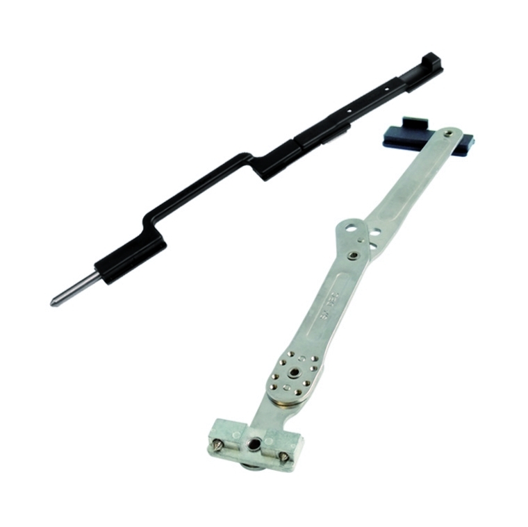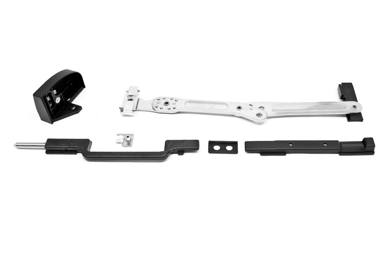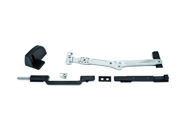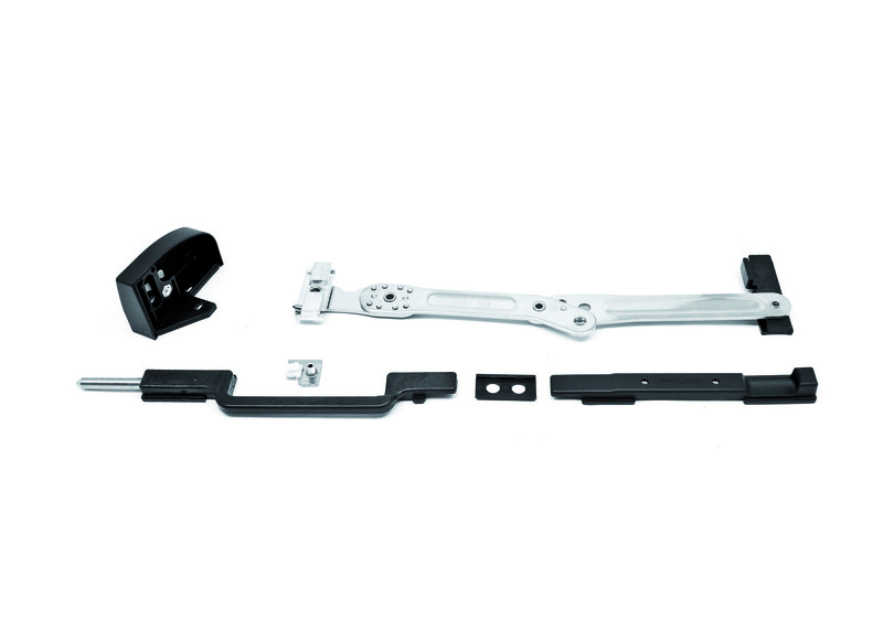 Innovative shutter stop for shutters and shutters in aluminum provided with a frame that allows the locking of the door after a rotation of 180°. Completely retractable because, when the sash is closed, it is not visible, easily usable by the user who must not lean out during locking and unlocking. Available in the right and left versions (the back is determined by the opening of the sash remaining inside the building) for camera profiles C.E. decentralized. This system can be applied, through simple processes, both on installed and non installed fixtures. The sash on which it is to be applied must have a width greater than 430 mm, a fundamental requirement for operation. The wall does not need to be drilled for installation. Therefore, it is ideal for application in buildings treated with thermal wall.