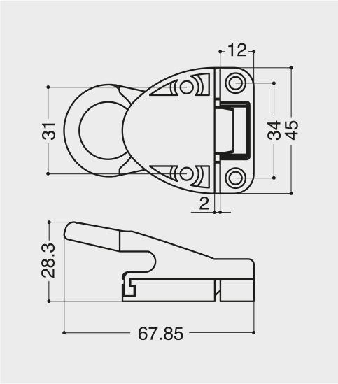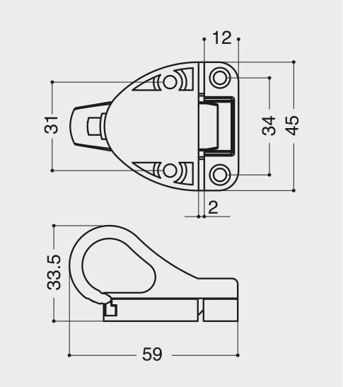 Finger catch with in full view screws and 1 - 2 - 3 - 7 mm compensation shims