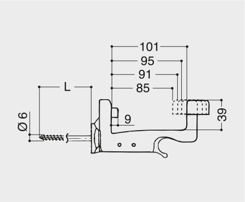 Locking system for shutters with sash seat adjustable from minimum of 85 to a maximum of 101 mm and available with various lengths of screws for fixing. The Super Top Grillo; the original shutter stop of the Esinplast, fully automatic during locking simply sending the shutter to the shutter stop; to unlock you must instead operate the special lever.Produced completely in thermoplastic material, to avoid the formation of rust, it has been tested to guarantee a high resistance to atmospheric agents and to the continuous opening and closing of the shutter. It can be applied on all the frames in aluminum, pvc, iron and wood. This system; available in 'with shock absorber' and/ or ' with increased dowel'; the first allows, in addition to dampen during closing the reception of the door, to eliminate the game and any noise between the latter and the fastener, the version with increased dowel allows instead to increase the height of that part of the fastener that determines the hold of the door during locking. The Super Top Grillo can; be easily mounted by creating a 10 mm hole for the insertion of the dowel needed to screw the fastener.
