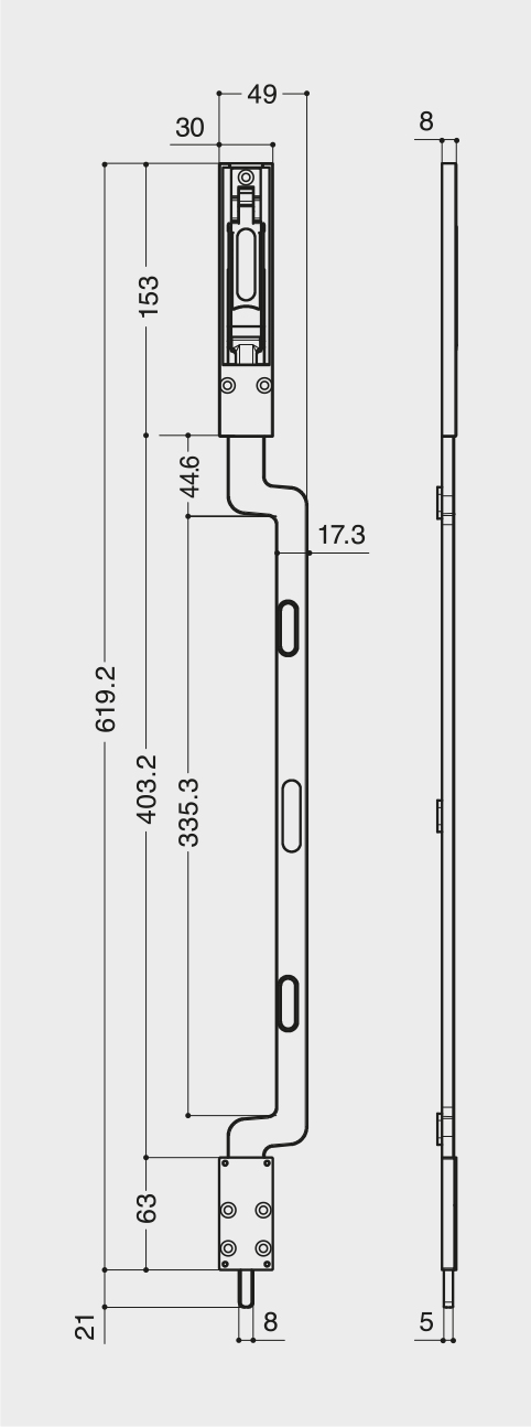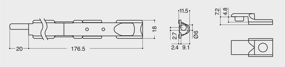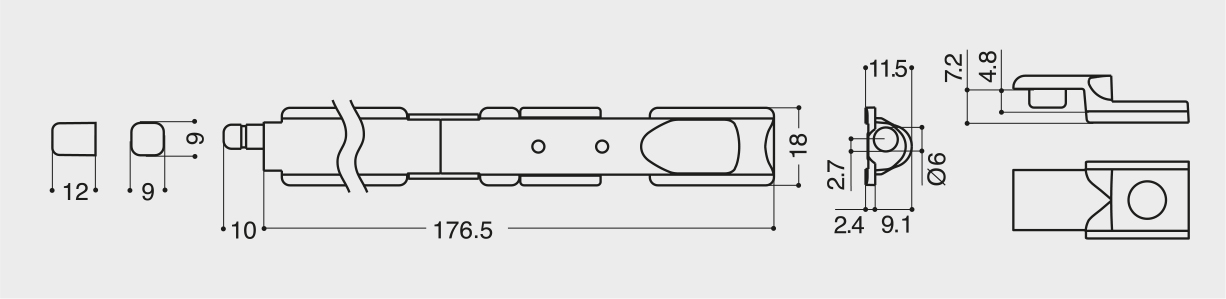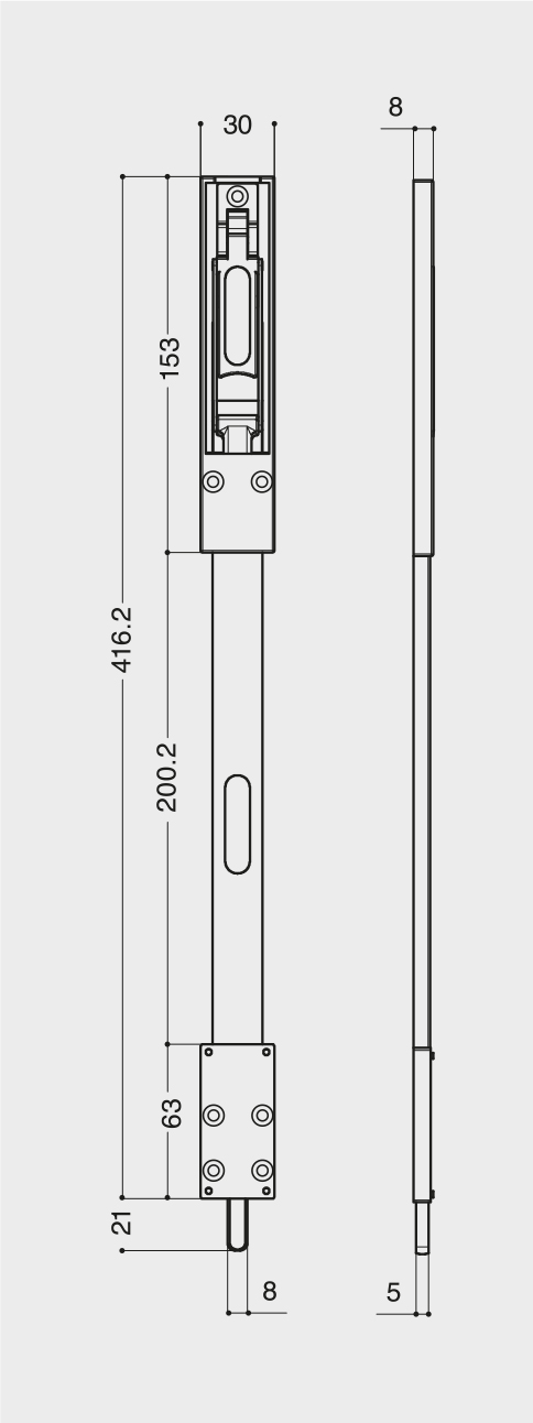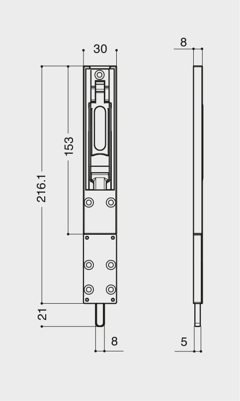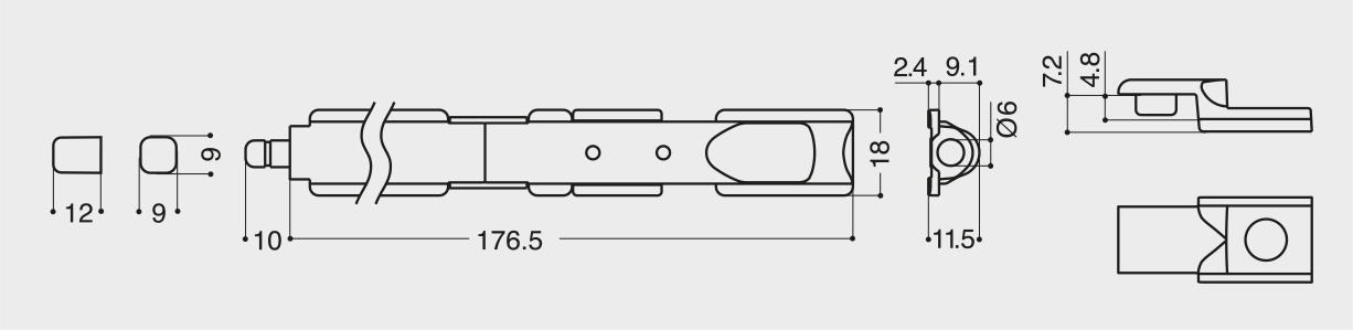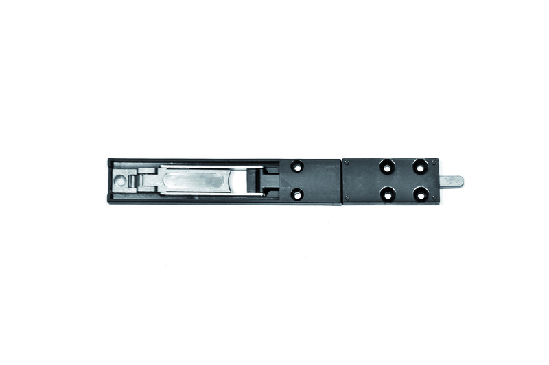 Catenaccio da mm 18 con perno piatto zincato e ponte di collegamento per asta cremonese