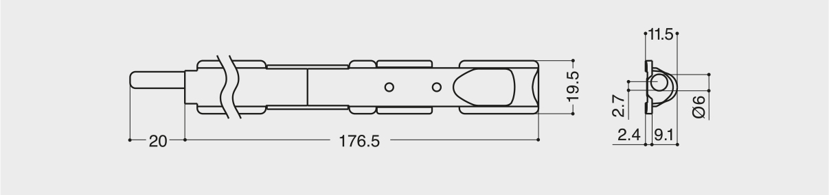 Catenaccio da mm 19,5 con perno inox da mm 20