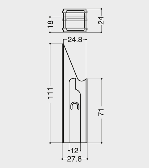 Mezza sella reversibile elastica persiana fissa per profilo vetro ad infilare camera mm 25x24 max - 18 minimo per ovalina mm 50x10