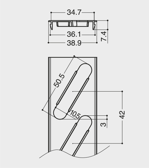 Coppia stecche per persiana fissa ovalina 50x10 camera mm 36 da 6Mt (Brevettato)