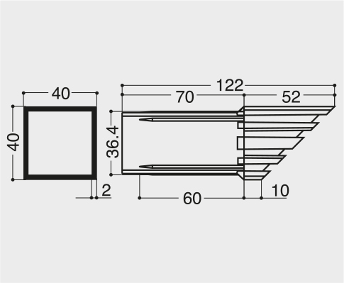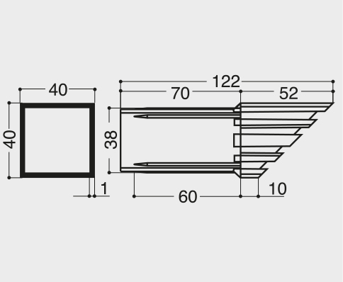 Tappo a saldare per infissi in PVC con tubolare da mm 40x40x1,5
